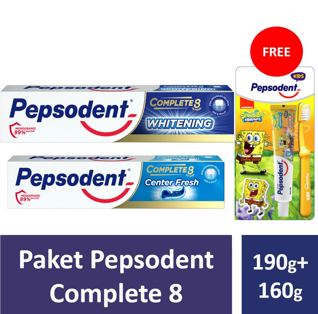 Kelebihan - Kelebihan membeli Buy Pepsodent Pasta Gigi Complete 8 Whitening 190g + Complete 8 Center Fresh 160g Free Kids Blister di Toko ini