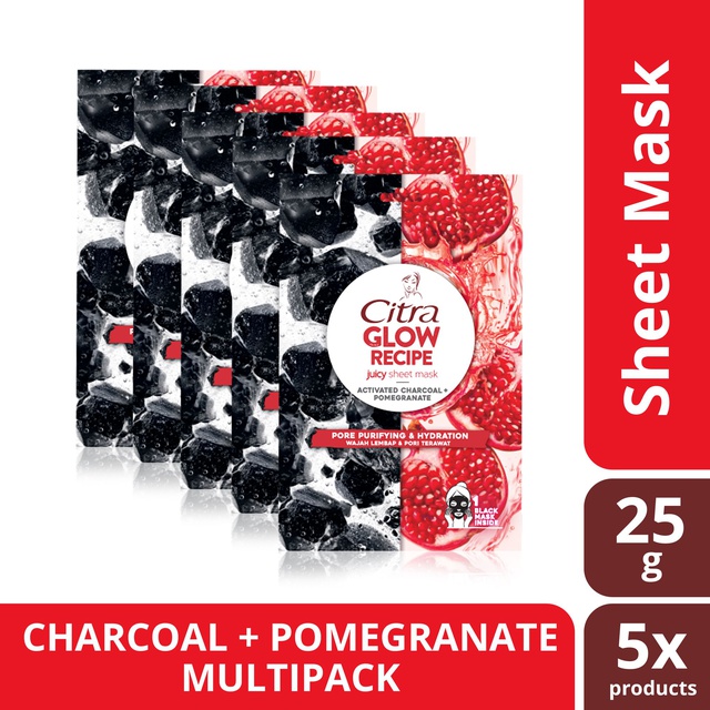 Citra Glow Recipe Juicy Sheet Mask / Masker Wajah Activated Charcoal + Pomegranate 25 gr - 5 Pcs