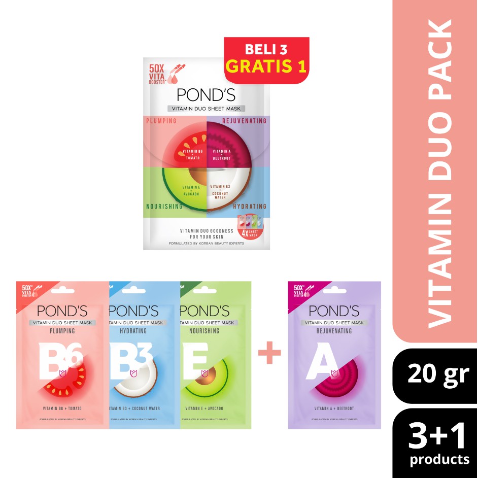 Alasan kenapa harus beli Pond's Vitamin Duo Sheet Mask Tomato + Vitamin B6 20 gr sekarang