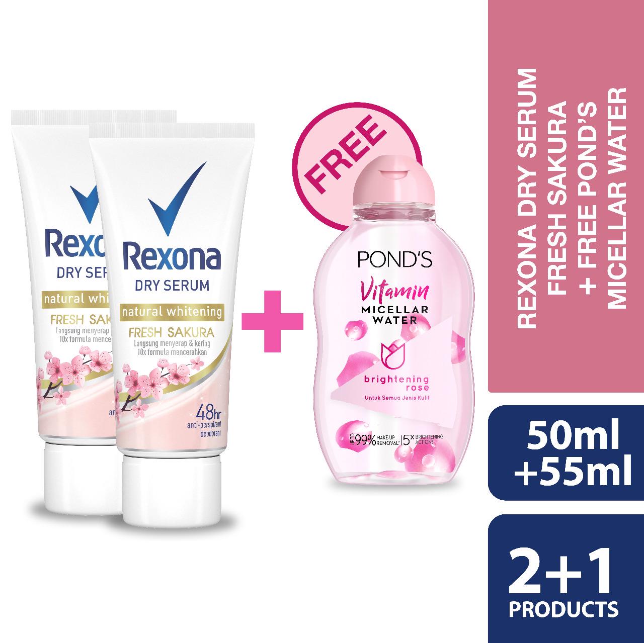 Kelebihan - Kelebihan membeli Rexona Deodorant Dry Serum Fresh Sakura 50Ml X2 Free Ponds Makeup Remover Brightening Rose 55Ml di Toko ini